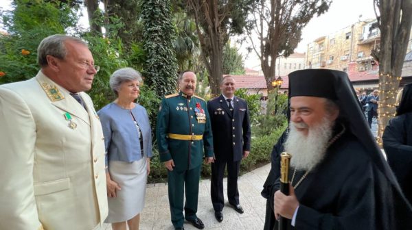Στη δεξίωση παρέστη ο Αρχηγός της Ρωσικής Εκκλησιαστικής Αποστολής στην Ιερουσαλήμ, Αρχιμανδρίτης Αλέξανδρος (Ελίσοφ), συνοδευόμενος από τους κληρικούς της Ιεραποστολής.