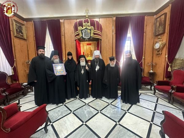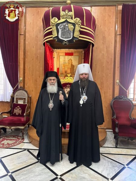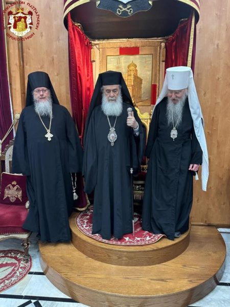 α. Τον Σεβασμιώτατο Μητροπολίτη Μάρκο, Επίσκοπο της Ρωσικής Εκκλησίας της Διασποράς (ROCOR), συνοδευόμενο από ομάδα προσκυνητών και τον Αρχιμανδρίτη π. Ρωμανό, οι οποίοι προσκάλεσαν τον Μακαριώτατο στη Ρωσική Μονή Ελαιώνος για την εορτή της Αναλήψεως του Κυρίου.
