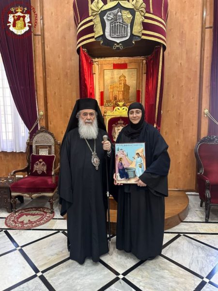 δ. Την Ηγουμένη της Ιεράς Μονής Αγίου Ευθυμίου Παλαιάς Πόλεως Ιεροσολύμων μοναχή Σάρρα, μετονομασθείσα σε Φωτεινή κατά την πρόσφατη κουρά της. Ο Μακαριώτατος την ευλόγησε και απηύθυνε Πατρικούς λόγους.