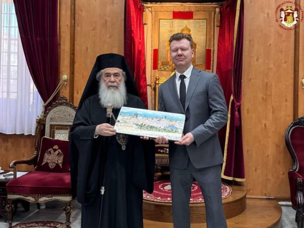 Τέλος, ο Πατριάρχης Ιεροσολύμων κ.κ. Θεόφιλος συνατήθηκε με τον Πρέσβη της Λευκορωσίας στο Ισραήλ, Yury Yaroshevic.