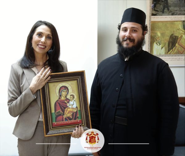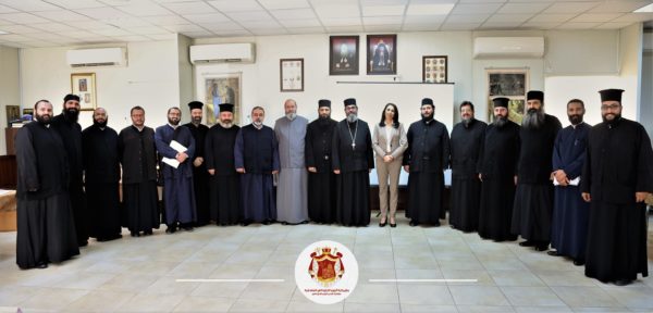 Μετά το πέρας του σεμιναρίου, εκ μέρους του Σεβασμιωτάτου Αρχιεπισκόπου Κυριακουπόλεως κ. Χριστοφόρου, ο Αρχιμανδρίτης Χριστόφορος Χαντάντ ευχαρίστησε την εκπαιδεύτρια του σεμιναρίου κ. Έλενα Σαγιέχ για την εισήγηση της και της προσέφερε ως δώρο μια εικόνα της Παναγίας.