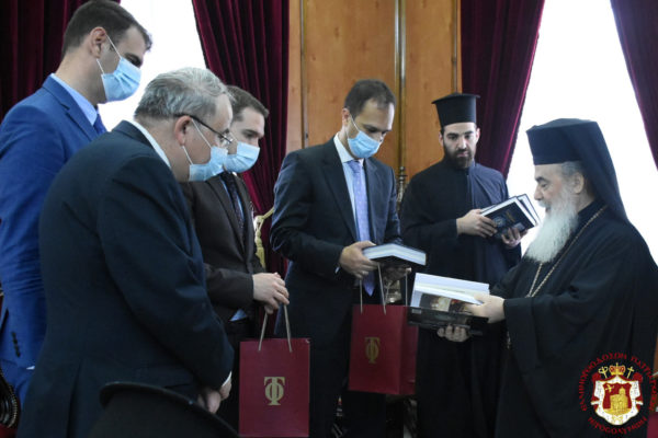 Αντιπροσωπεία διπλωματών της πρεσβείας της Σερβικής Δημοκρατίας στο Τελ Αβίβ επισκέφθηκε τον Μακαριώτατο Πατριάρχη Ιεροσολύμων κ.κ. Θεόφιλο. Ανταλλάχθηκαν δώρα και ο Μακαριώατος ευχήθηκε καταλλήλως προς τους αξιότιμους επισκέπτες.