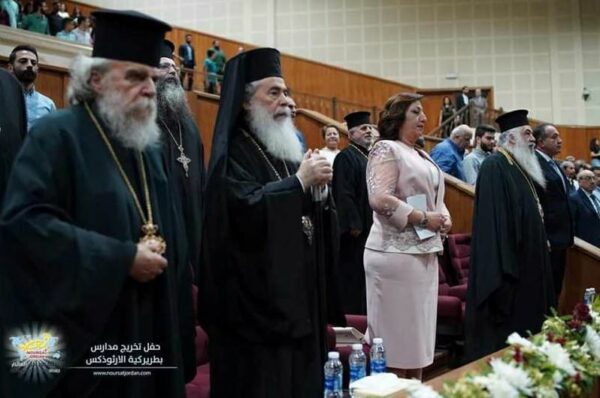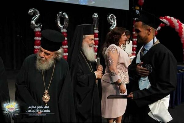 Στην αίθουσα Cultural Center στο Αμμάν πραγματοποιήθηκε η τελετή αποφοίτησης των σπουδαστών των σχολείων του Πατριαρχείου Ιεροσολύμων στην Ιορδανίας. Στην τελετή παραβρέθηκε ο Μακαριώτατος Πατριάρχης Ιεροσολύμων κ.κ. Θεόφιλος, συνοδευόμενος από τον Σεβ. Αρχιεπίσκοπο Κωνσταντίνης κ. Αρίσταρχο και τον Σεβ. Αρχιεπίσκοπο Κυριακουπόλεως κ. Χριστοφόρο. Συνολικά από τα σχολεία αποφοίτησαν 144 σπουδαστές. Στην προσφορά του Πατριαρχείου και στην υψηλού επιπέδου διδασκαλία που γίνεται στα σχολεία αναφέρθηκε η Διευθύντρια κ. Σουχέϊρα Μπετζάλη. Κατόπιν μικρής εκδήλωσης που πραγματοποιήθηκε, ακολούθησε η απονομή των πτυχίων από τον Μακαριώτατο Πατριάρχη κ.κ. Θεόφιλο, ο οποίος ευχήθηκε στους σπουδαστές καλή σταδιοδρομία.
