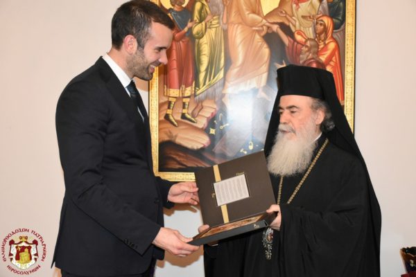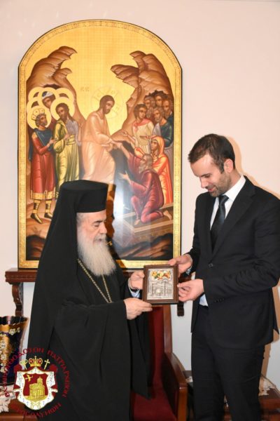 Τον Πατριάρχη Ιεροσολύμων κ.κ. Θεόφιλο επισκέφθηκε, τη Δευτέρα 10 Μαϊου, ο υπουργός Οικονομικών του Μαυροβουνίου Μιλότσκο Σπάσιτς. Ο κ. Σπάσιτς επισκέφθηκε για πρώτη φορά την Αγία Πόλη και γενικότερα το Ισραήλ.