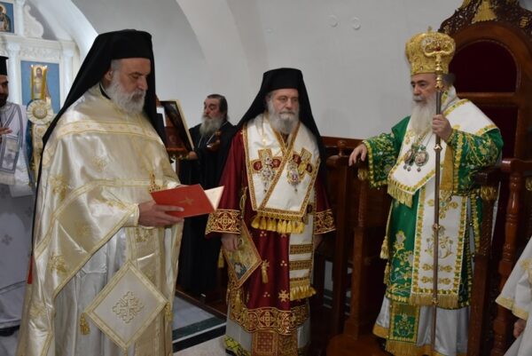 Σήμερον ἡ ἁγία τοῦ Χριστοῦ Ἐκκλησία τιμᾷ καί γεραίρει τήν μνήμην τῶν ἁγίων ἑξακοσίων τριάκοντα Πατέρων τῆς ἐν Χαλκηδόνι συνελθούσης ἁγίας καί Οἰκουμενικῆς Συνόδου· Διό καί ἡμεῖς συνήλθομεν ἐν τῶ ἱερῷ τούτῳ προσκυνήματι, τῇ ἱερᾷ καί ἱστορικῇ Μονῇ, δηλονότι τοῦ Ἁγίου Ἰωάννου τοῦ Προδρόμου καί Βαπτιστοῦ τοῦ Σωτῆρος ἡμῶν Χριστοῦ παρά τῷ Ἰορδάνῃ ποταμῷ, ἵνα τελέσωμεν τό μυστήριον τῆς Θείας Εὐχαριστίας καί δοξολογήσωμεν τό μέγα τῆς Ἁγίας Τριάδος ὄνομα.