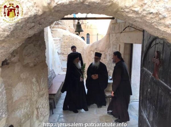 Ὁ Μακαριώτατος ἐγένετο δεκτός ἐν σεβασμῷ ὑπό τῆς Ἁγιοσαββιτικῆς Ἀδελφότητος καί μετά τήν προσκύνησιν τοῦ ἱεροῦ Σκηνώματος τοῦ Ὁσίου Πατρός ἡμῶν Σάββα τοῦ ἡγιασμένου, ἐνημερώθη ὡς καί ὁ κ. Γενικός ὑπό τοῦ ἑορτάζοντος Πνευματικοῦ Ἀρχιμανδρίτου π. Εὐδοκίμου ἐπί τῶν προβλημάτων, τά ὁποῖα δημιουργοῦν εἰς τήν Μονήν οἱ περίοικοι ἐπί τῆς περιοχῆς τῆς εὑρισκομένης εἰς ἀκτῖνα δύο χιλιομέτρων κυκλικῶς, ἀνεγνωρισμένης ὡς ἀνηκούσης εἰς τήν Μονήν καί μή οἰκοδομησίμου ἤδη ἀπό τῆς ἐποχῆς τῆς Ἐντολοδόχου Ἀγγλικῆς Κυβερνήσεως, τῆς Ἰορδανίας ἕως καί σήμερον.