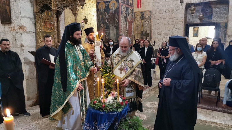 Της Θείας Λειτουργίας το πρωί της Κυριακής προεξήρχε ο Σεβασμιώτατος Μητροπολίτης Ελενουπόλεως κ. Ιωακείμ, συλλειτουργούντων του Γέροντος Δραγουμάνου Αρχιμανδρίτου π. Ματθαίου και των Αρχιμανδριτών π. Μελετίου και π. Καλλίστου, ψάλλοντος του κ. Γκοτσοπούλου, παρουσία του Γενικού Προξένου της Ελλάδος στα Ιεροσόλυμα και του Πρέσβη της Γεωργίας στο κράτος του Ισραήλ και μετεχόντων αρκετών Ελλήνων της Παροικίας Ιεροσολύμων και Αραβοφώνων από τα Ιεροσόλυμα και τις κατεχόμενες περιοχές, όσων πέρασαν τα μέτρα του covid – 19.