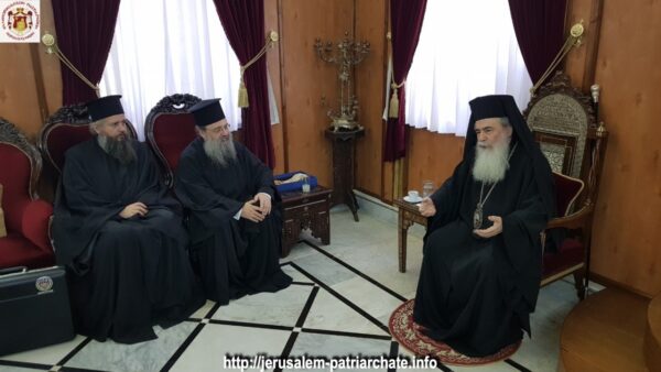 Τους προσκυνητές, τους οποίους συνόδευε ο Σεβ. Μητροπολίτης Πατρών κ. Χρυσόστομος, υποδέχτηκε ο Μακαριώτατος Πατριάρχης Ιεροσολύμων κ.κ. Θεόφιλος. Ο Μακαριώατος απευθύνθηκε με λόγια αγάπης προς τον Σεβασμιώτατο και τους προσκυνητές, με τον Μητροπολίτη κ. Χρυσόστομο να ευχαριστεί και αυτός από την πλευρά του για την θερμή υποδοχή.