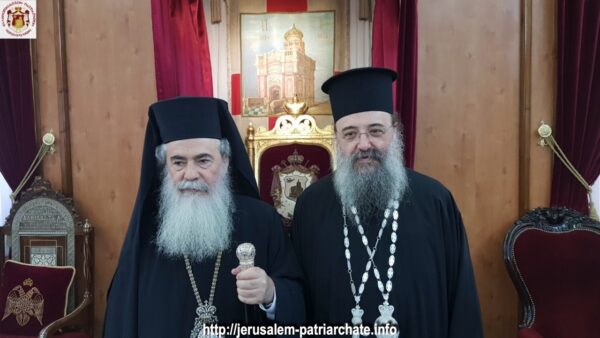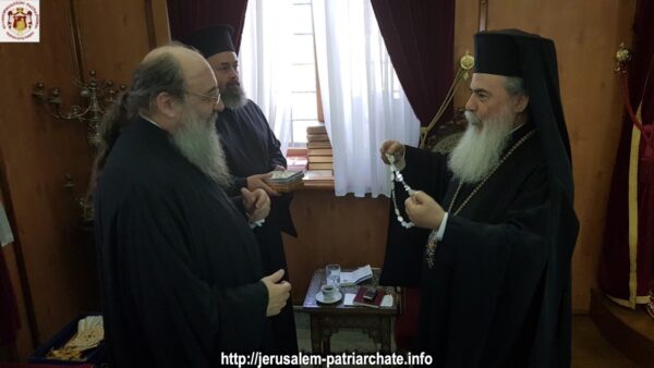 Τους προσκυνητές, τους οποίους συνόδευε ο Σεβ. Μητροπολίτης Πατρών κ. Χρυσόστομος, υποδέχτηκε ο Μακαριώτατος Πατριάρχης Ιεροσολύμων κ.κ. Θεόφιλος. Ο Μακαριώατος απευθύνθηκε με λόγια αγάπης προς τον Σεβασμιώτατο και τους προσκυνητές, με τον Μητροπολίτη κ. Χρυσόστομο να ευχαριστεί και αυτός από την πλευρά του για την θερμή υποδοχή.