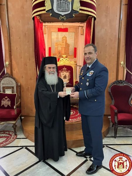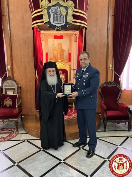 Επίσκεψη στην έδρα του Πατριαρχείου Ιεροσολύμων πραγματοποίησε χθες ο Αρχηγός του Γενικού Επιτελείου Αεροπορίας, Αντιπτέραρχος Θεμιστοκλής Μπουρολιάς, συνοδευόμενος από τη σύζυγό του και συνεργάτες του.