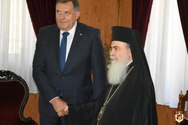 Ο Μακαριώτατος καλωσόρισε στην Αγία Γη τον κ. Ντόντικ με τον οποίο είχε συζήτηση για επίκαιρα θέματα ενημερώνοντας τον παράλληλα για την κατάσταση που επικρατεί στα Πανάγια Προσκυνήματα. Ο σερβοβόσνιος πολιτικός είναι ένας ακόμη που επισκέπτεται το Πατριαρχείο Ιεροσολύμων το τελευταίο διάστημα σε μία κρίσιμη περίοδο.