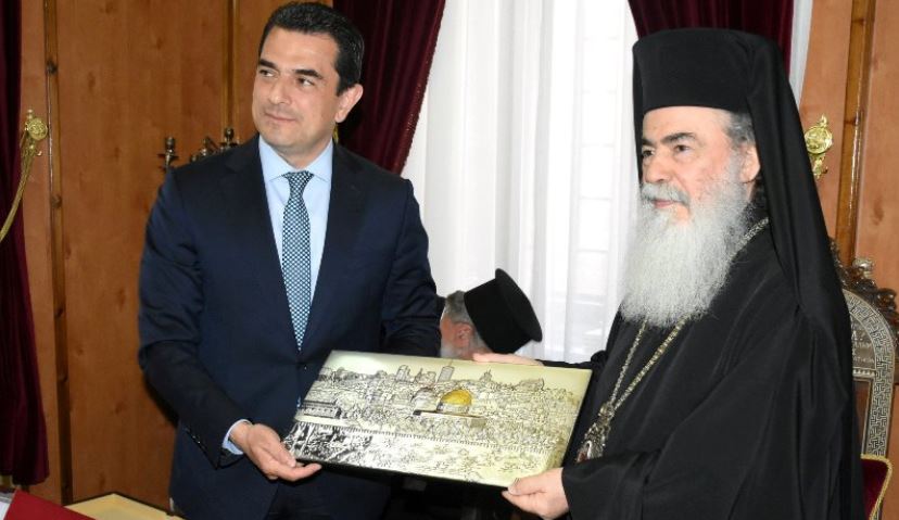 Με τον Υπουργό Περιβάλλοντος και Ενέργειας της Ελλάδας κ. Κωνσταντίνο Σκρέκα, ο οποίος βρέθηκε στο Ισραήλ στο πλαίσιο επίσημης επίσκεψης, συναντήθηκε ο Πατριάρχης Ιεροσολύμων κ.κ. Θεόφιλος το απόγευμα της Δευτέρας.