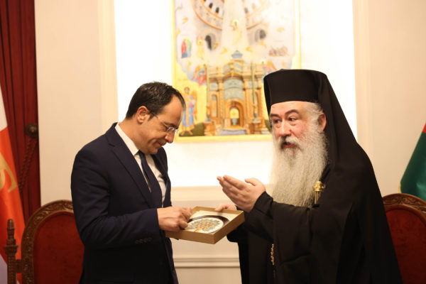 Ο Πρόεδρος της Κυπριακής Δημοκρατίας κ. Νίκος Χριστοδουλίδης συναντήθηκε το απόγευμα της Τρίτης 1ης Αυγούστου 2023 με τον Σεβασμιώτατο Αρχιεπίσκοπο Κυριακουπόλεως κ. Χριστοφόρο, στην έδρα της Πατριαρχικής Επιτροπείας στο Αμμάν της Ιορδανίας.