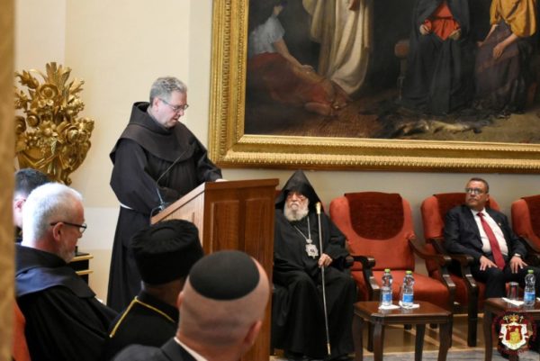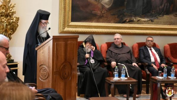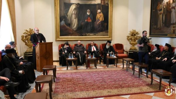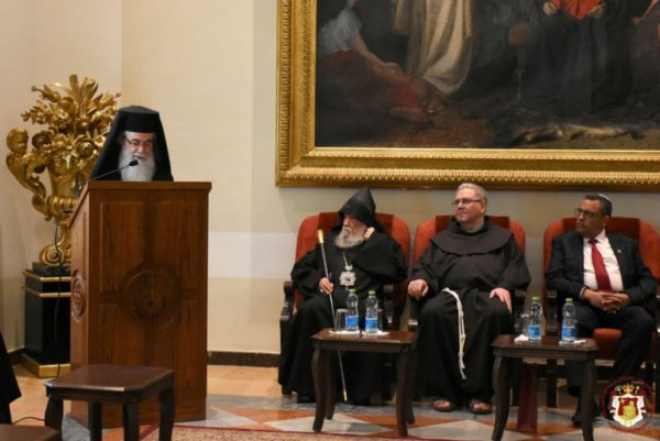 Προηγήθηκε η προσφώνηση από την πλευρά του ηγουμένου των Φραγκισκανών π. Φραγκίσκο Πατόν ο οποίος υπογράμμμισε ότι πρόφατα εορτάσθηκε το Εβραϊκό Πάσχα, κατά το οποίο οι Ιουδαίοι ενθυμούνται την δοθείσα από τον Θεό απελεύθερωση από την δουλεία της Αιγύπτου. Εορτάσθηκε το Χριστιανικό Πάσχα ως η μετάβαση μας από την δουλεία της αμαρτίας στην ελευθερία του Αναστάντος Χριστού. Εορτάσθηκε το Ραμαζάνι ως περίοδος κατακτήσης των αρετών της νηστείας, της λιτότητος και της βοηθείας προς τους πτωχούς.