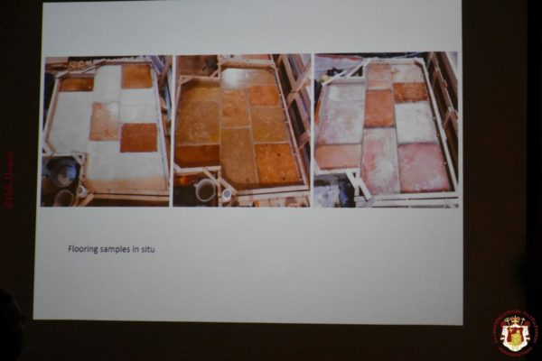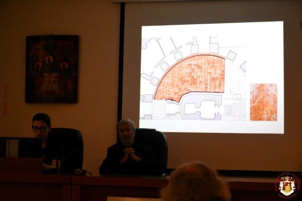 Κατά τη διάρκεια της συνάντησης οι τεχνικοί του Πανεπιστημίου Sapientia της Ρώμης παρουσίασαν επί οθόνης τις επιτελούμενες εργασίες για τη συντήρηση των κατεστραμμένων πλακών ή/και την αντικαταστασή τους με άλλες εναρμονιζόμενες με το όλο κτιριακό περιβάλλον του Ναού.