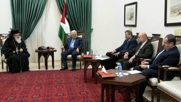 Τις πρόσφατες δηλώσεις των Αρχηγών των Εκκλησιών της Ιερουσαλήμ για την ανάγκη η παγκόσμια κοινότητα να προστατεύσει τους Χριστιανούς στους Αγίου Τόπους χαιρέτησε ο Παλαιστίνιος Πρόεδρος Μαχμούτ Αμπας κατά τη διάρκεια της συνάντησης που είχε με τον Πατριάρχη Ιεροσολύμων κ.κ. Θεόφιλο την περασμένη Δευτέρα.