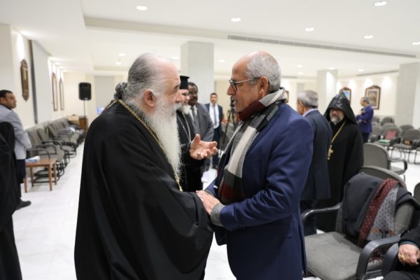 Η συνάντηση πραγματοποιήθηκε στον Καθεδρικό Ναό της Υπαπαντής του Κυρίου στο Αμμάν παρουσία του Σεβασμιωτάτου Αρχιεπισκόπου Κυριακουπόλεως κ. Χριστοφόρου, εκπροσώπων των θρησκευτικών κοινοτήτων της χώρας και πρώην υπουργών.
