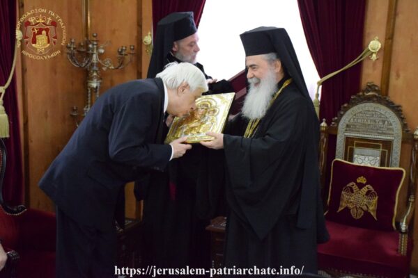 «Η ελληνική Πολιτεία βρίσκεται στο πλευρό σας και στο πλευρό του Παλαίφατου Πατριαρχείου Ιεροσολύμων, στον αγώνα σας για την υπεράσπιση των αρχών και αξιών της Ορθόδοξης Χριστιανοσύνης» τόνισε ο Πρόεδρος της Δημοκρατίας Προκόπης Παυλόπουλος, σε συνάντηση με τον Πατριάρχη Ιεροσολύμων κ.κ. Θεόφιλο στα Ιεροσόλυμα, κατά τη διάρκεια της επίσκεψής του στο Ισραήλ.