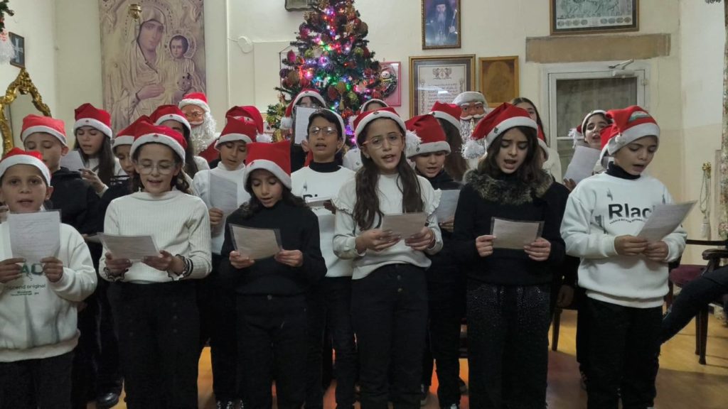 Λίγο πριν την εορτή των Χριστουγέννων τα παιδιά της ενορίας του Αγίου Πορφυρίου ετοίμασαν μια μικρή γιορτή με τραγούδια και χαμόγελα μαρτυρώντας ότι τίποτα δεν χάθηκε και ότι παρά το έρεβος του πολέμου η ζωή συνεχίζεται. Στο πλευρό τους ο Σεβ. Αρχιεπίσκοπος Τιβεριάδος κ. Αλέξιος και ο Αρχιμανδρίτης π. Σίλας. Οι δύο κληρικοί οι οποίο δεν εγκατέλειψαν ούτε στιγμή το ναό – καταφύγιο στα δύσκολα χρόνια, μην λογαριάζοντας ακόμα και την ίδια τους τη ζωή.