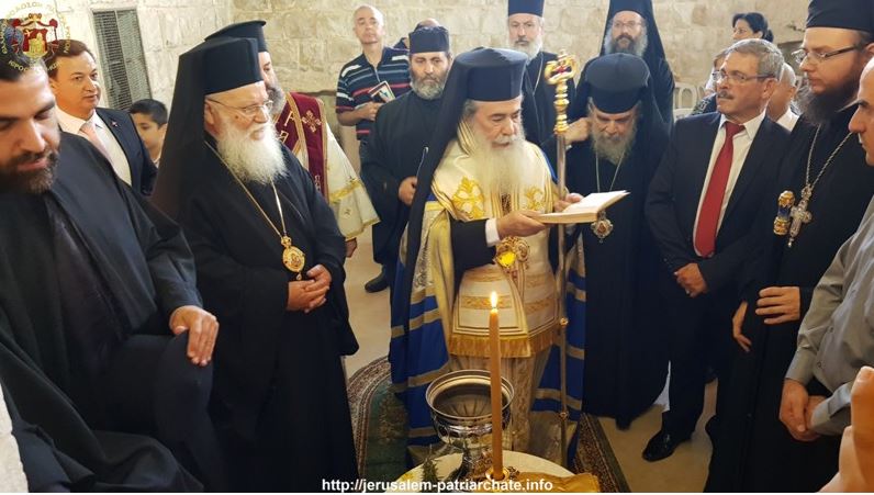 Ἡ θεία Λειτουργία ἐτελέσθη ἐπί τῇ ἀνακαινίσει τοῦ Ναοῦ αὐτοῦ, τῇ ἐπιχορηγήσει τῆς Παλαιστινιακῆς Αὐτονομίας, ἐξ οὗ καί παρέστησαν ἐκπρόσωποι αὐτῆς, ὡς ὁ κ. Ράμζη Χούρη, Πρόεδρος τῆς Παλαιστινιακῆς Ἐκκλησιαστικῆς Ἐπιτροπῆς ἐπί τῶν Χριστιανικῶν Ὑποθέσεων, ἡ Γραμματεύς αὐτοῦ κ. Χανανίγιε Ἀμῆρε, ἐκπρόσωποι τοῦ Νομάρχου τῆς περιοχῆς, ὁ Πρέσβυς τῆς Παλαιστινιακῆς Αὐτονομίας εἰς τό Βατικανόν κ. Ἤσσα Κασισίγιε καί ἄλλοι Δημαρχιακοί καί Κρατικοί παράγοντες.