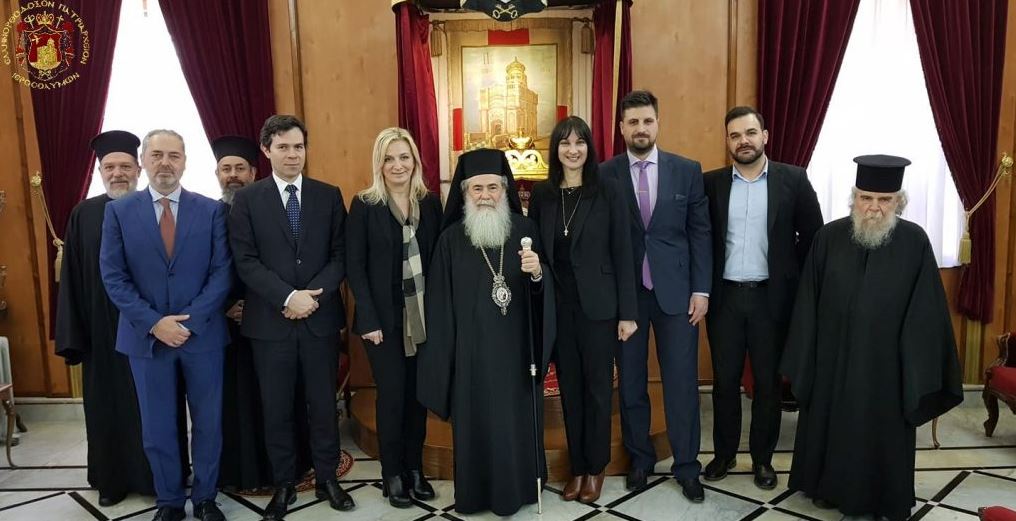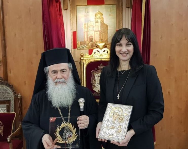Τήν ἐξοχωτάτην κ. Ὑπουργόν ἐδέχθη ἡ Α.Θ.Μ. ὁ Πατήρ ἡμῶν καί Πατριάρχης Ἱεροσολύμων κ.κ. Θεόφιλος μετά Πατέρων Ἁγιοταφιτῶν.