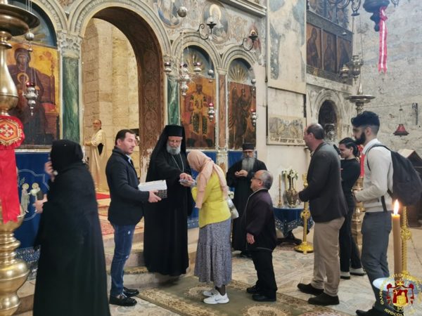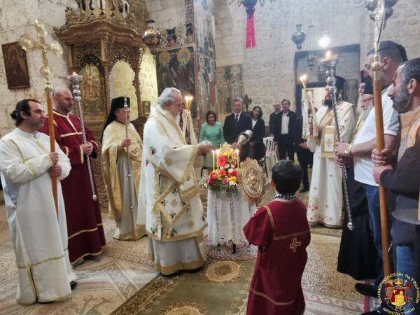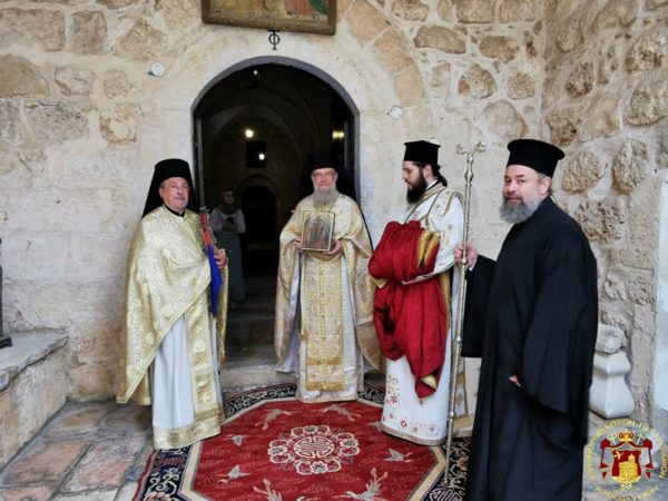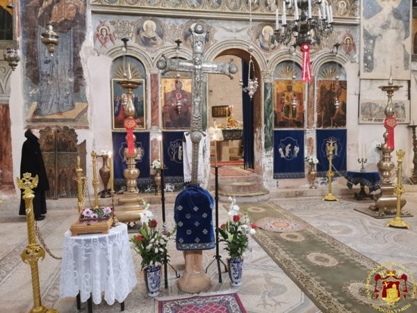 Πρός τιμήν τοῦ Τιμίου Σταυροῦ ἐγένετο Ἑσπερινός ἀφ’ ἑσπέρας καί θεία Λειτουργία τήν πρωΐαν, προεξάρχοντος τοῦ Σεβασμιωτάτου Μητροπολίτου Καπιτωλιάδος κ. Ἡσυχίου καί συλλειτουργούντων αὐτῷ τοῦ Ἀρχιμανδρίτου π. Ἰγνατίου καί τοῦ Ἀρχιμανδρίτου π. Κλαυδίου, τοῦ Ἀρχιδιακόνου Μάρκου καί τοῦ Ἱεροδιακόνου Συμεών, ψάλλοντος τοῦ κ. Βασιλείου Γκοτσοπούλου, προσελθόντων πιστῶν Ἑλληνοφώνων τῆς ἑλληνικῆς παροικίας Ἱεροσολύμων, Ἀραβοφώνων τῆς Κοινότητος Ἱεροσολύμων, Ρωσοφώνων, Ρουμανοφώνων καί Ἀραβοφώνων ἐκ τῶν κατεχομένων περιοχῶν, παρουσίᾳ τοῦ Γενικοῦ Προξένου τῆς Ἑλλάδος εἰς τά Ἱεροσόλυμα κ. Εὐαγγέλου Βλιώρα καί μελῶν τοῦ Ἑλληνικοῦ Γενικοῦ Προξενείου καί τοῦ Πρέσβεως τῆς Γεωργίας κ. Lasha.