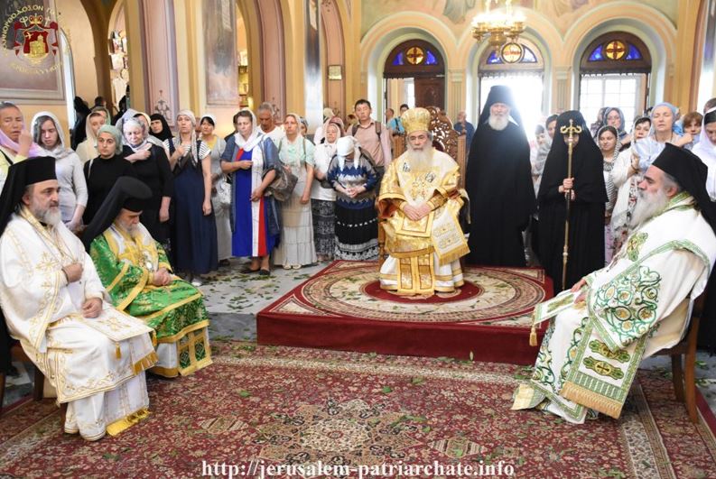 Εἰς τόν ναόν τοῦτον προεξῆρξεν τῆς Θείας Λειτουργίας ἡ Α.Θ.Μ. ὁ Πατήρ ἡμῶν καί Πατριάρχης Ἱεροσολύμων κ.κ. Θεόφιλος συλλειτουργούντων Αὐτῷ τῶν Σεβασμιωτάτων Ἀρχιεπισκόπων Κωνσταντίνης κ. Ἀριστάρχου, Σεβαστείας κ. Θεοδοσίου καί τοῦ Σεβασμιωτάτου Μητροπολίτου Ἑλενουπόλεως κ. Ἰωακείμ, τοῦ Προϊσταμένου τῆς Ρωσικῆς Πνευματικῆς Ἀποστολῆς MISSIA Ἀρχιμανδρίτου Ἀλεξάνδρου, τοῦ Ἀρχιμανδρίτου Ἀθανασίου, τοῦ Ἀρχιμανδρίτου Δομετιανοῦ καί ἄλλων Ἱερέων τοῦ Πατριαρχείου Μόσχας, Ἁγιοταφιτῶν Ἱερομονάχων, τοῦ Ἀρχιδιακόνου Μάρκου, ἄλλων διακόνων, ψαλλούσης τῆς χορῳδίας τοῦ μοναστηρίου τῆς Ρωσικῆς Ἱερᾶς Γυναικείας Μονῆς Ὀρεινῆς καί μετέχοντος εὐλαβοῦς Ρωσοφώνου ἐκκλησιάσματος.