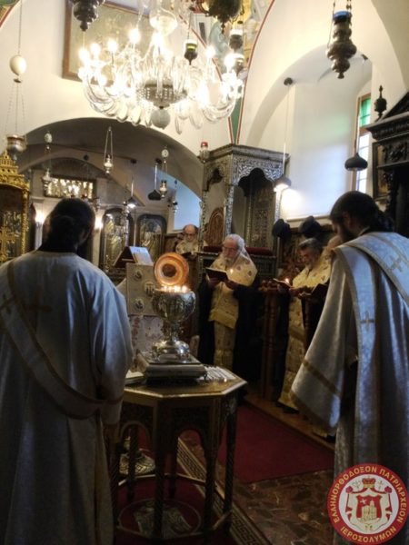 Του μυστηρίου του Αγίου Ευχελαίου προεξήρξε ο Πατριάρχης Ιεροσολύμων κ.κ. Θεόφιλος συνιερουργούντων μετ’ Αυτού Αρχιερέων σύμφωνα με την τάξη και ακολούθως ευχελιαζομένων υπ’ αυτών των ιερομονάχων, ιεροδιακόνων, μοναχών και μοναζουσών και των προσκυνητών.