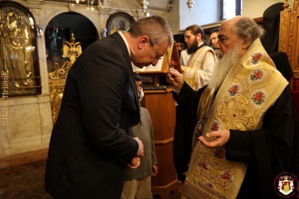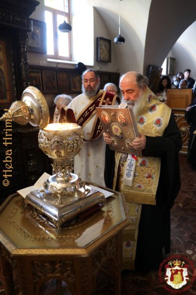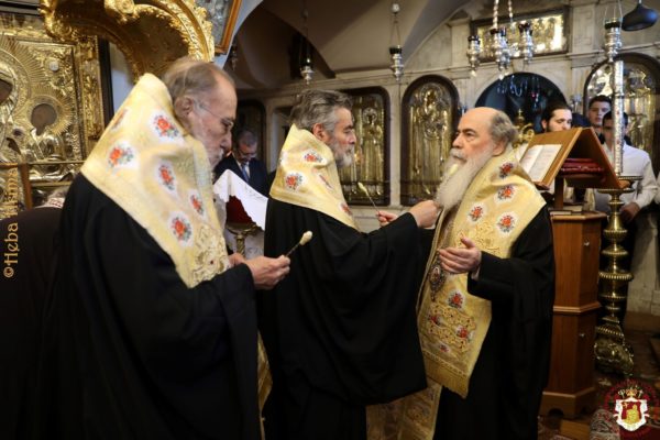 Του ιερού Ευχελαίου προεξήρχε ο Μακαριώτατος Πατριάρχης Ιεροσολύμων κ.κ. Θεόφιλος, συνιερουργούντων έξι Αρχιερέων σύμφωνα με την τάξη.