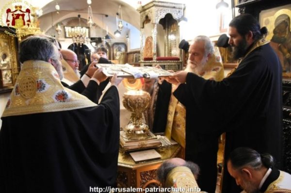 Μετά το τέλος των ευχών, ο Μακαριώτατος ηυχελίασε τους Αρχιερείς, οι Αρχιερείς τον Μακαριώτατον και ο Μακαριώτατος και οι Αρχιερείς ηυχελίασαν τους προσελθόντες ιερείς, μοναχούς και πιστούς, μεταξύ των οποίων και ο Γενικός Πρόξενος της Ελλάδος στα Ιεροσόλυμα κ. Ευάγγελος Βλιώρας.