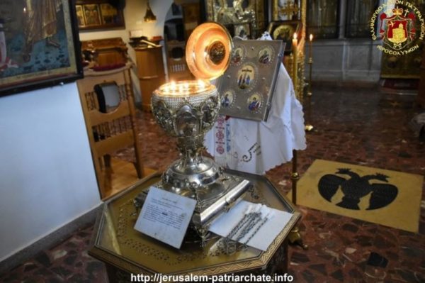 Το απόγευμα της Μεγάλης Τετάρτης, 15/28 Απριλίου 2021, τελέσθηκε το μυστήριον του Αγίου Ευχελαίου στο μοναστηριακό ναό των Αγίων Κωνσταντίνου και Ελένης, προεξάρχοντος του Πατριάρχη Ιεροσολύμων κ.κ. Θεοφίλου συνιερουργούντων έξι Αρχιερέων, όπως ορίζει η τάξη της Εκκλησίας και συμμετεχόντων Αγιοταφιτών Ιερομονάχων, μοναχών και εντοπίων πιστών.