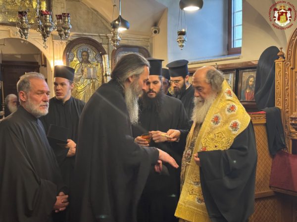 Προ της Απολύσεως και ενώ εψάλλετο υπό του Ιεροδιακόνου π. Συμεών το «ἐπί τῶν ποταμῶν Βαβυλῶνος…», ευχελιάσθησαν ο Μακαριώτατος, οι Αρχιερείς, οι Αρχιμανδρίτες, οι μοναχοί, οι μονάζουσες και οι ευλαβείς προσκυνητές, ζητούντες συγχώρηση αλλήλοις και ευχόμενοι Καλό Πάσχα.