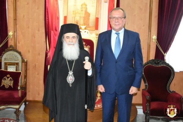 Επίσκεψη στον Μακαριώτατο Πατριάρχη Ιεροσολύμων κ.κ. Θεόφιλο Γ’ πραγματοποίησε ο Πρέσβης της Ρωσίας στο Ισραήλ Ανατόλι Βίκτοροφ την Τρίτη 7 Ιουνίου 2022.