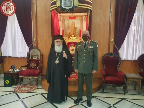 Με την ευχή η Κύπρος να απελευθερωθεί αλλά και την πρόβλεψη που είχε κάνει ο Πατριάρχης Θεόφιλος πριν έξι χρόνια να επαληθεύεται πραγματοποιήθηκε η επίσκεψη του Αρχηγού Εθνικής Φρουράς, Αντιστράτηγου Δημόκριτου Ζερβάκη, στο Πατριαρχείο Ιεροσολύμων
