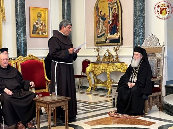 Όλους τους εκπροσώπους των Εκκλησιών υποδέχθηκε ο Πατριάρχης Ιεροσολύμων κ.κ. Θεόφιλος ο οποίος τους ευχαρίστησε για την επίσκεψή τους επί τη εορτή των Χριστουγέννων λέγοντας ότι η επίσκεψη αύτη τελείται και σε ανάμνηση του λίαν σημαντικού γεγονότος της συνάντησης του Πάπα Παύλου του ΣΤ’ μετά του Οικουμενικού Πατριάρχου Αθηναγόρου στα Ιεροσόλυμα το έτος 1964.