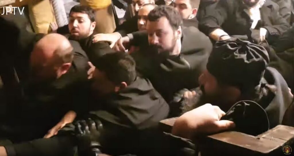 Αἱ προσπάθειαι τοῦ κ. Ράμζη Χούρη, Προέδρου τῆς ὡς ἄνω Ἐπιτροπῆς, δέν κατώρθωσαν νά πείσουν τούς Ἀρμενίους, καί ὅτε ἤρχισεν ὁ Ἑσπερινός τῶν Ὀρθοδόξων, οὗτοι παρανόμως κατέλαβαν τό Σπήλαιον καί ἐχρησιμοποίησαν λεκτικήν και σωματικήν βίαν εἰς βάρος τῶν δικαιωματικῶς κατελθόντων Ὀρθοδόξων Πατέρων, καί ἐμάτωσαν εἰς τό μέτωπον τόν Δραγουμανεύοντα Ἀρχιμανδρίτην Ματθαῖον, δεχθέντα θεραπείαν εἰς νοσοκομεῖον.