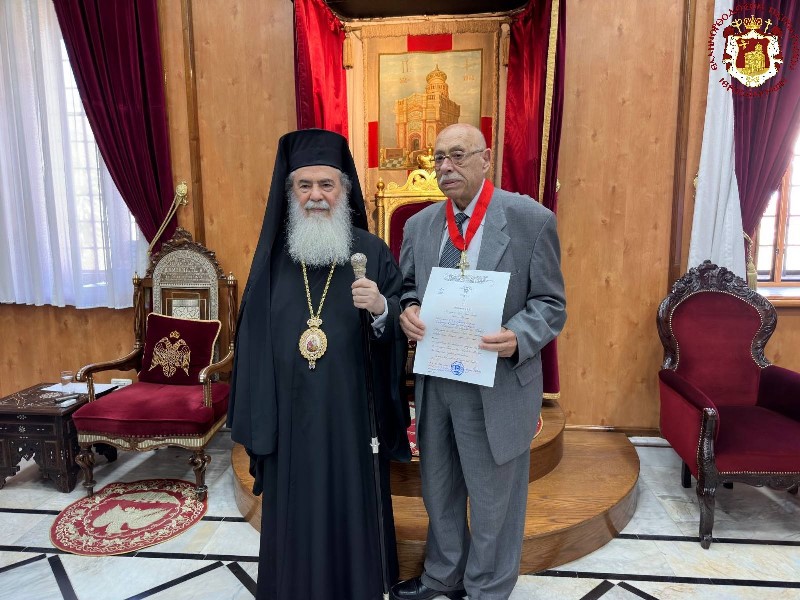 Με το παράσημο του Σταυροφόρου του Τάγματος των Ιπποτών του Παναγία Τάφου τίμησε ο Πατριάρχης Ιεροσολύμων κ.κ. Θεόφιλος τον κ. Νάσρη Μούσα – Αμπού Σαμήρ.
