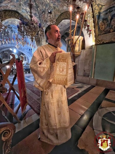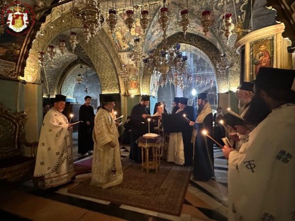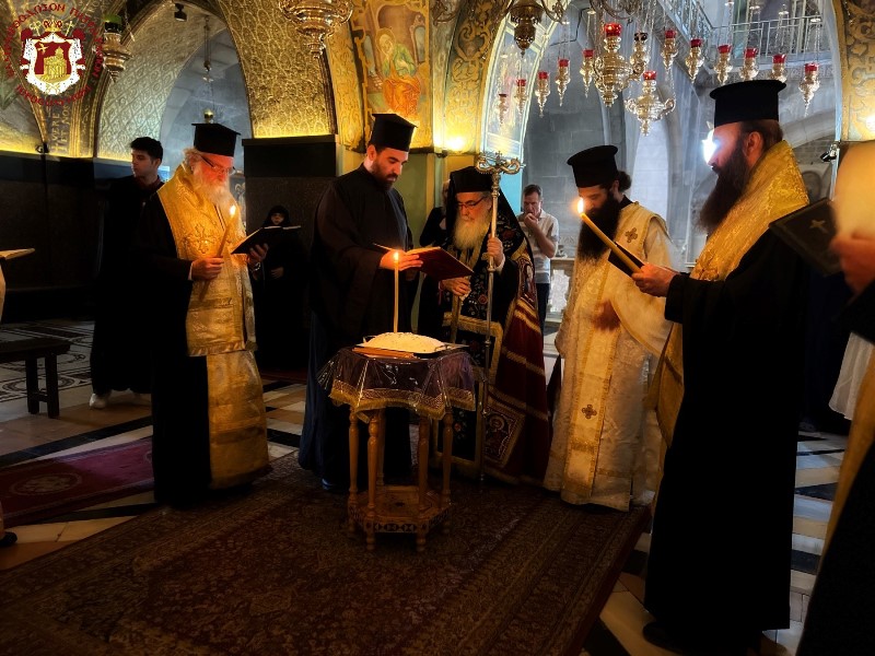 Του μνημοσύνου προεξήρχε ο Μακαριώτατος Πατριάρχης Ιεροσολύμων κ.κ. Θεόφιλος, συνγχοροστατούντων Αγιοταφιτών Αρχιερέων, Ιερομονάχων και Ιεροδιακόνων και συμπροσευχομένων μοναχών, μοναζουσών και πιστών, “εκτιμώντων την μνήμην του εκλιπόντος και δεομένων υπέρ αναπαύσεως της ψυχής αυτού εν χώρα ζώντων μετά δικαίων”.