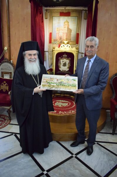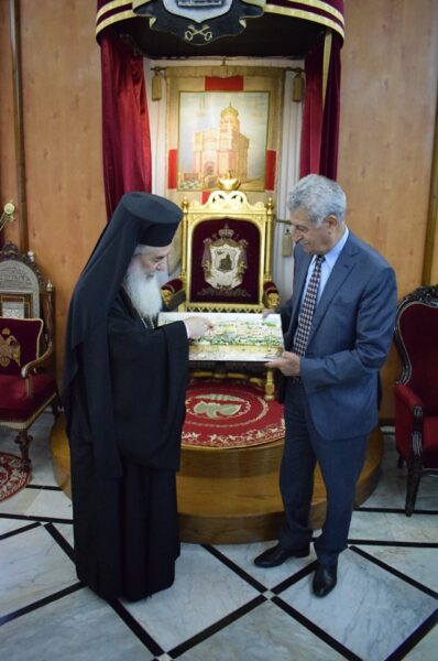 Ο Πρόεδρος του Διοικητικού Συμβουλίου του Πανεπιστημίου της Παλαιστίνης Al ahlyia, με τον κ. Mäher n. Canawati, επιχειρηματία και Δημοτικό Σύμβουλο Βηθλεέμ, σε επίκαιρη επίσκεψη στο Πατριαρχείο Ιεροσολύμων και τον Μακαριώτατο Πατριάρχη κ.κ. Θεόφιλο, από όπου παρατίθενται τα παρακάτω φωτογραφικά στιγμιότυπα: