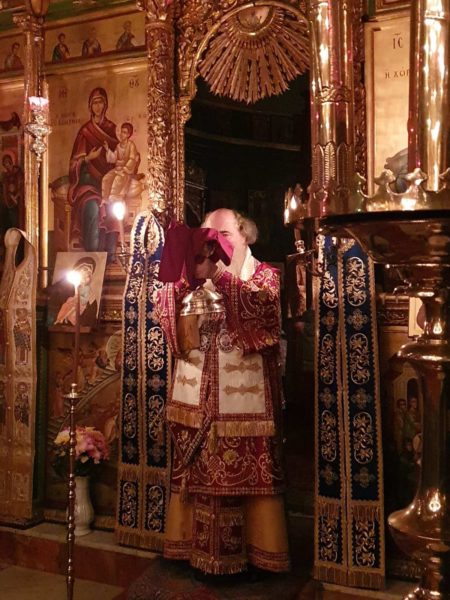 Εἰς τό Κοινωνικόν τῆς θείας Λειτουργίας ἐκήρυξε τόν θεῖον Λόγον ἡ Α.Θ.Μ. διά τῆς κάτωθι προσφωνήσεως ἑλληνιστί: