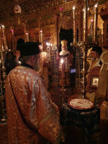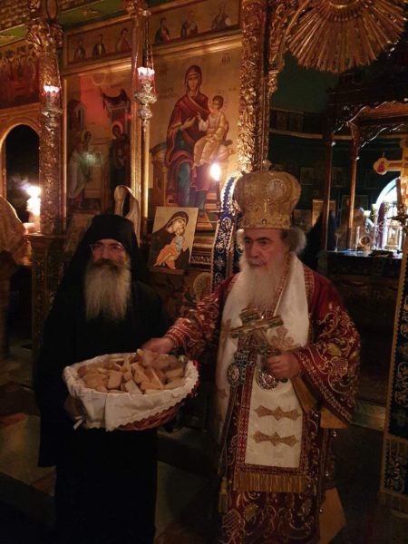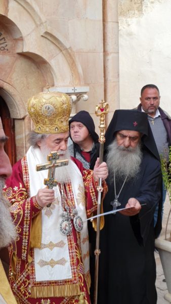 Τό Σάββατον, 5ην Δεκεμβρίου ἑωρτάσθη ἡ μνήμη τοῦ Ἁγίου Σάββα εἰς ὁλονύκτιον ἀγρυπνίαν, τῆς ὁποίας προεξῆρξεν ἡ Α.Θ.Μ. ὁ Πατήρ ἡμῶν καί Πατριάρχης Ἱεροσολύμων κ.κ. Θεόφιλος, συλλειτουργούντων Αὐτῷ τοῦ Σεβασμιωτάτου Ἀρχιεπισκόπου Κωνσταντίνης κ. Ἀριστάρχου καί τοῦ τοῦ Ἀρχιερέως τῆς σειρᾶς Σεβασμιωτάτου Μητροπολίτου Ἑλενουπόλεως κ. Ἰωακείμ, Ἁγιοταφιτῶν Ἱερομονάχων, ψαλλόντων τοῦ Ἱεροδιακόνου π. Συμεών καί τῶν βοηθῶν αὐτοῦ δεξιά ἑλληνιστί καί τοῦ Ἀρχιμανδρίτου π. Φιλοθέου ἀριστερά ἀραβιστί καί μετεχόντων Ὀρθοδόξων πιστῶν ἐκ Βηθλεέμ, Χωρίου τῶν Ποιμένων, Μπετζάλλας καί τοῦ βορείου Ἰσραήλ, τῇ τιμητικῇ παρουσίᾳ τοῦ Γενικοῦ Προξένου τῆς Ἑλλάδος εἰς τά Ἱεροσόλυμα κ. Εὐαγγέλου Βλιώρα.