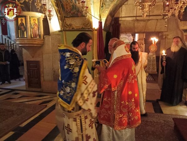 Μετά τη χειροτονία ακολούθησε άνοδος στο Πατριαρχείον και η ευλογία υπό του Μακαριωτάτου Πατριάρχου Ιεροσολύμων κ.κ. Θεοφίλου.