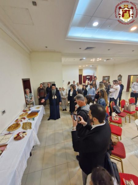 Αντί κηρύγματος ανεγνώσθη το Χριστουγεννιάτικο Μήνυμα του Μακαριωτάτου Πατριάρχου Ιεροσολύμων κ.κ. Θεοφίλου του Γ’, στην Ελληνική, Αραβική, Σερβική και Αγγλική γλώσσα.