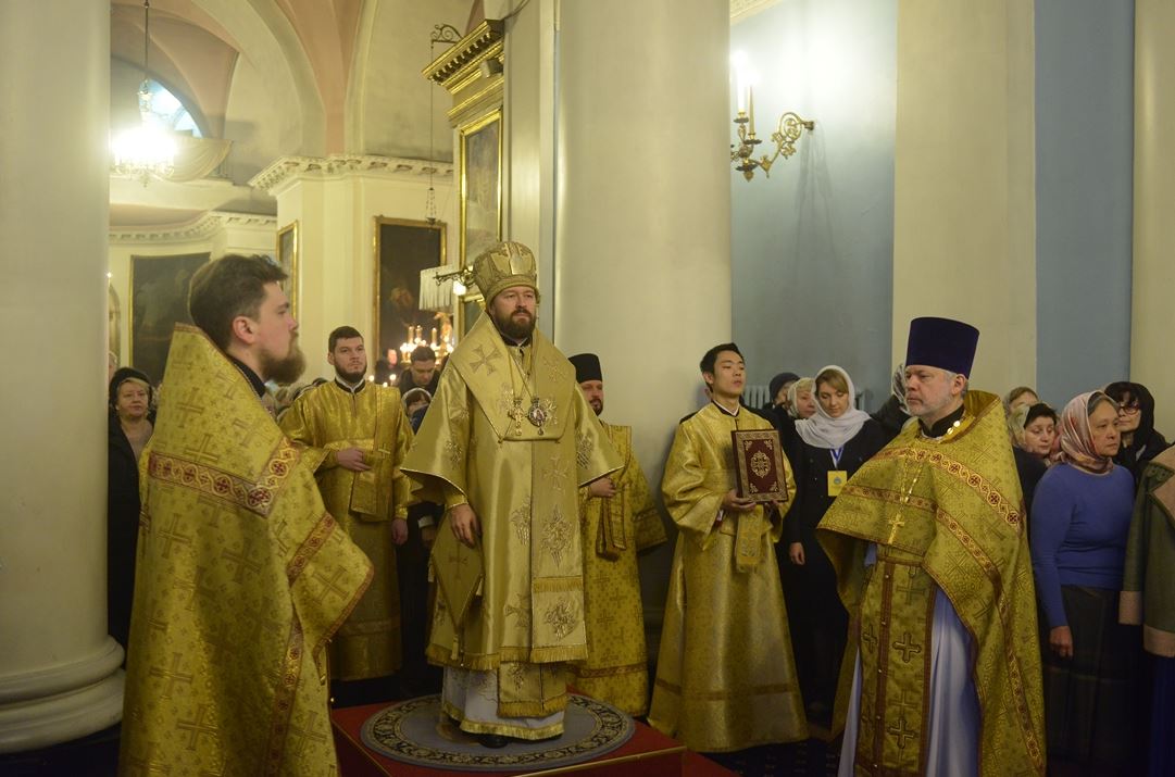 Στις 30 Δεκεμβρίου του 2018 ο Μητροπολίτης Βολοκολάμσκ Ιλαρίωνας, πρόεδρος του Τμήματος Εξωτερικών Εκκλησιαστικών Σχέσεων του πατριαρχείου της Μόσχας, τέλεσε την Θεία Λειτουργία στον Ιερό Ναό της Παναγίας “Όλων των Θλιβομένων η Χαρά” στη Μόσχα, στην οδό Μπολσσάγια ορντίνκα. Μετά τη Λειτουργία ο Μητροπολίτης προσευχήθηκε για την ειρήνη στην Ουκρανία και έβγαλε λόγο, στον οποίο θύμισε στους παρεβιρσκόμενους ότι σε 10 μέρες η Ρωσία θα εορτάζει τα Χριστόγεννα. Θύμισε ότι τις ημέρες αυτές, κατά τη διάρκεια της Χριστουγενιάτικες νηστείας, τιμούμε τη μνήμη των τριών παίδων εν καμίνι, καθώς θύμισε και την ιστορία με τον Χριστό και τους καλεσμένους, και είπε ότι και οι δύο ιστορίες μας διηγούνται για τις αδυναμίες του ανθρώπου και τη δύναμη του Θεού.