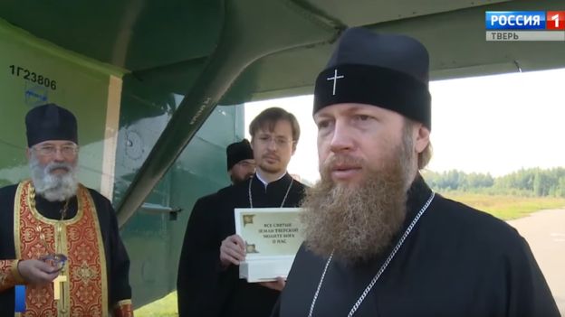 Για μία ακόμα χρονιά ο πατέρας Αλέξανδρος Γκοριάτσεφ επιβιβάστηκε σε αεροπλάνο και πέταξε πάνω από την περιφέρεια του Τβερ στη Ρωσία, προκειμένου να ράνει με αγιασμό τους πιστούς.