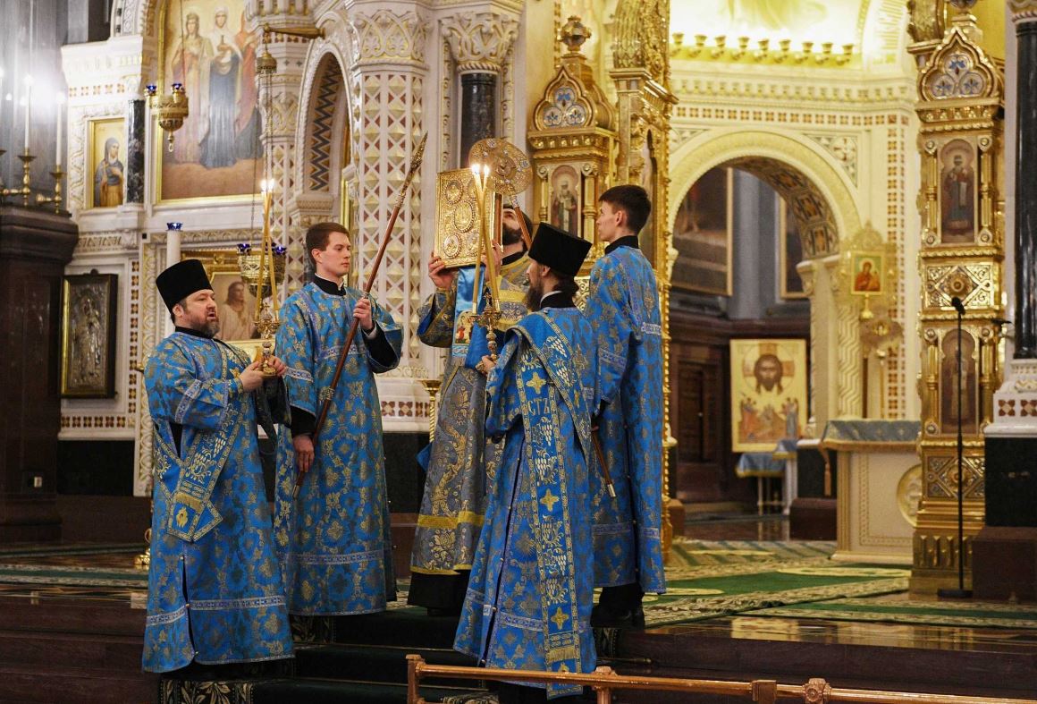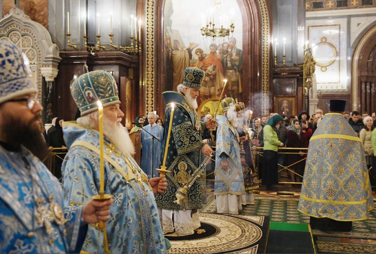 Ιερά Αγρυπνία για τον εορτασμό της Θεοτόκου ( με το παλαιό ημερολόγιο ) τέλεσε στον Καθεδρικό Ναό του Σωτήρος Χριστού ο Πατριάρχης Μόσχας και πασών των Ρωσιών κ.κ. Κύριλλος. Η Αγρυπνία μεταδόθηκε σε ζωντανή σύνδεση από το τηλεοπτικό κανάλι “Σόουζ”.