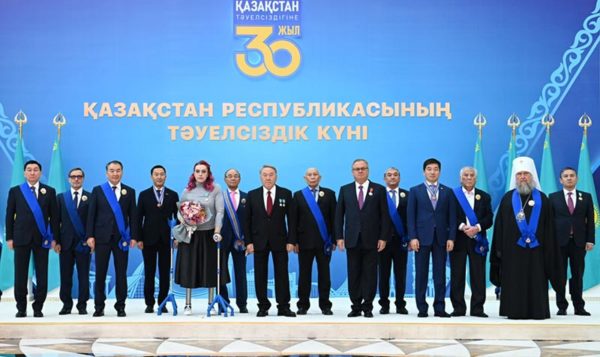 Ο Πρώτος Πρόεδρος και Ηγέτης του Έθνους Ελμπασί Νουρσουλτάν Ναζαρμπάεβ, συνεχάρη όλους τους συμμετέχοντες στην τελετή για την 30ή επέτειο της ανεξαρτησίας του Καζακστάν, σημειώνοντας ότι αυτή η γιορτή είναι ένα φωτεινό σύμβολο των επιτευγμάτων του κράτους. «Όλα αυτά τα χρόνια το Καζακστάν αγωνίζεται για φιλόδοξους στόχους προς όφελος του λαού μας. Εργαστήκαμε για να διασφαλίσουμε ότι η χώρα θα πάρει μια άξια θέση στον κόσμο, θα γίνει ένα σεβαστό κράτος. Είμαι περήφανος που ήταν η γενιά μου που είχε τη μεγάλη αποστολή να εκπληρώσει τις πανάρχαιες φιλοδοξίες των προγόνων μας. Σήμερα, ο τωρινός Πρόεδρος βράβευσε με το διάταγμά του μια μεγάλη ομάδα πολιτών, μεταξύ των οποίων και εσάς. Είναι μεγάλη μου τιμή να απονείμω αυτά τα βραβεία την παραμονή της Ημέρας της Ανεξαρτησίας. Καθένας από τους παρευρισκόμενους εδώ συμβάλλει σημαντικά στην ανάπτυξη και την ευημερία του Καζακστάν», δήλωσε ο Ελμπασί Νουρσουλτάν Ναζαρμπάεβ.