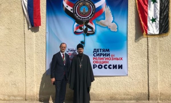 Ακολούθως ο κύριος Γκλουσκό, συνοδευόμενος από τον ηγούμενο Αρσένιο μετέβη στο σχολείο μέσης εκπαιδεύσεως στο δήμο Μπάρζα της πρωτεύουσας, το οποίο αποκαταστάθηκε με την οικονομική βοήθεια των θρησκευτικών κοινοτήτων της Ρωσίας, που συγκεντρώθηκε στο πλαίσιο της δραστηριότητας της Διαθρησκειακής ομάδας εργασίας για την παροχή βοήθειας στον πληθυσμό της Συρίας του Συμβουλίου συνεργασίας με τις θρησκευτικές ενώσεις υπό τον Πρόεδρο της Ρωσίας. Όπως συμφώνησαν το ρωσικό και το συριακό υπουργείο Διαφώτισης, από το επόμενο ακαδημαϊκό έτος στο σχολείο αυτό θα αρχίσει η διδασκαλία της ρωσικής γλώσσας.