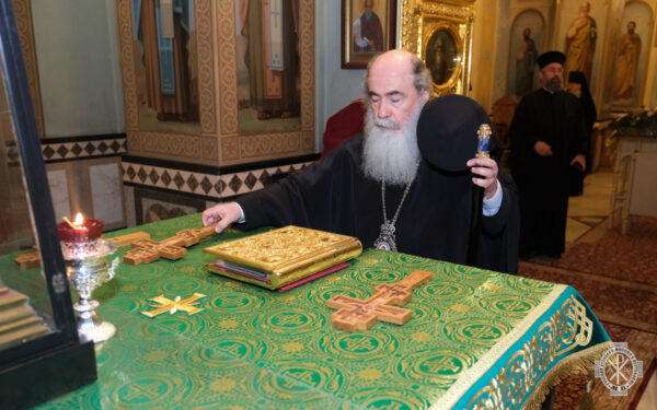 Στη δεξίωση παρέστη και ο Μακαριώτατος Πατριάρχης Ιεροσολύμων και πάσης Παλαιστίνης κ.κ Θεόφιλος ο οποίος απηύθυνε χαιρετισμό στους παρευρισκόμενους και τους συνεχάρη για την εθνική εορτή της χώρας τους. Έπειτα ο Πατριάρχης ξεναγήθηκε στους χώρους του Μετοχίου και του χάρισαν ένα ξυλόγλυπτο σταυρό για ανάμνηση της επίσκεψης.