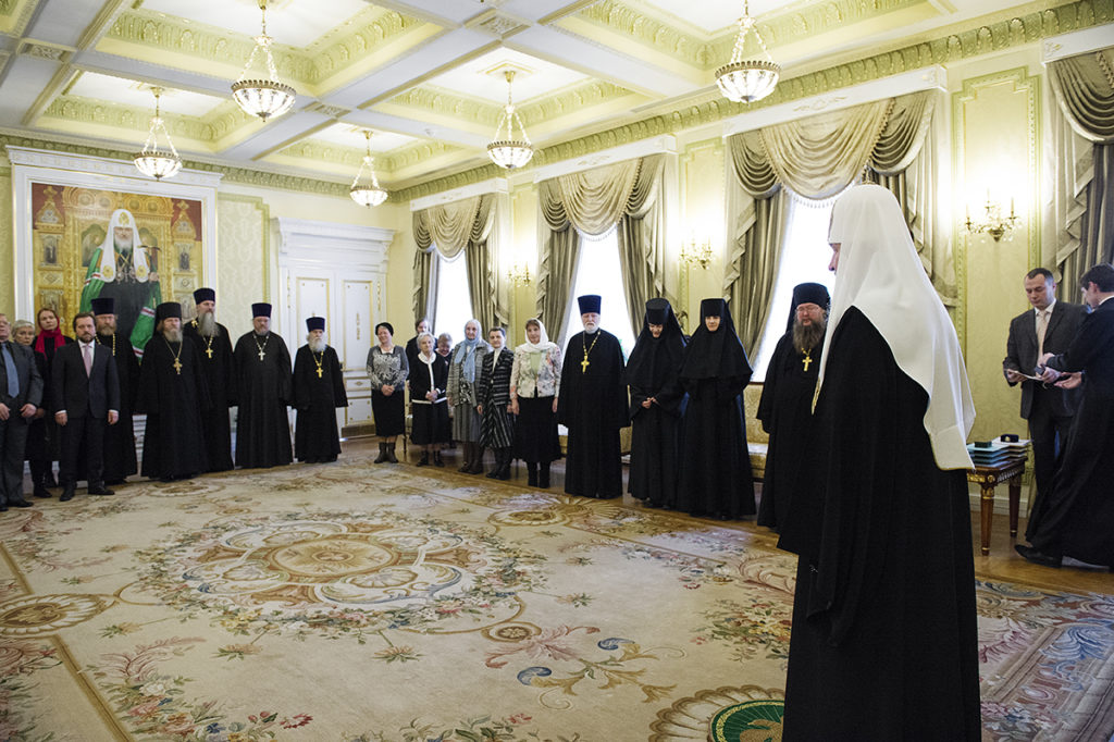Ο Πατριάρχης δίνει οδηγίες, ο Πατριάρχης παρακολουθεί την εκτέλεση αυτών, αλλά το έργο γίνεται κυρίως από τους Ηγούμενους, τις Ηγουμένες, τους κληρικούς και μοναχούς της Επισκοπής της Μόσχας. Σε όλους σας θα απονεμηθούν υψηλά εκκλησιαστικά βραβεία. Θα ζητήσω από τον γέροντα Διονύσιο να παρουσιάσει αυτά τα βραβεία. Σας εκφράζω την ειλικρινή μου ευγνωμοσύνη και εύχομαι η βοήθεια του Θεού να φέρει υπεύθυνη εκκλησιαστική υπακοή στην Πόλη της Πρώτης Έδρας.